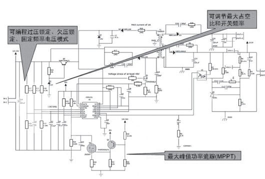 在應用中,通過在ISETyinjiaodongtaitiaojiedianliuxianzhi,congershixianzuidafengzhigonglvzhuizonggongneng。yidanshurudianyazhumaichongxiajiang,dianliuxianzhijiuhuibeijiangdi,zhizhishurudianyahuifu。zhezhongfangshiwuxushiyongjiageangguideweikongzhiqi。zheyangshixiandechongdiankongzhiqihuifaxianfengzhigonglvdianbingjinxingdongtaitiaojie,shiqifuhebuduanbianhuadedianyuantexing。shijishang,tongguocaiyongzuidafengzhigonglvzhuizongjishu,keyijiangjiaoyiwangduo30%的電荷從太陽能板傳輸至蓄電池,這樣太陽能街燈係統就可以采用尺寸更小的太陽能板,從而帶來顯著的成本效益。圖1是采用安森美半導體CS51221控製器的太陽能板充電控製應用示意圖。