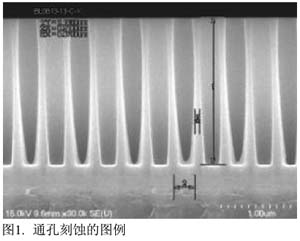 隨sui著zhe半ban導dao體ti製zhi造zao技ji術shu推tui進jin到dao更geng加jia先xian進jin的de深shen亞ya微wei米mi技ji術shu,半ban導dao體ti金jin屬shu布bu線xian的de層ceng數shu越yue來lai越yue多duo,相xiang應ying的de通tong孔kong刻ke蝕shi工gong藝yi也ye越yue多duo,並bing且qie伴ban隨sui著zhe通tong孔kong的de尺chi寸cun隨sui著zhe器qi件jian設she計ji尺chi寸cun逐zhu步bu縮suo小xiao。以yiDRAM製造為例,存儲量由4M發展到512M時,設計規則由1μm縮小到0.16μm,其中通孔的尺寸也從0.8μm下降到了0.25μm。通孔尺寸越小,刻蝕的難度也越來越大,如果刻蝕不到位,就可能出現金屬布線間的開路,直接導致器件失效。