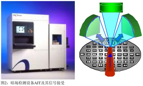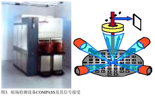 暗場檢測技術作為檢測晶片缺陷的有效手段之一,其優點在於以下幾個方麵:首先,在暗場獲得圖像的灰階易於控製和調節。暗場是位於矽片上方和矽片成30度角的區域,在此區域內獲得的圖像灰階,可以通過調節激光的能量和探測器的敏感度來輕鬆控製;其次,在暗場內,可以很容易地辨認有具體形態和位於矽片表麵的缺陷,比如刮傷、微粒之類的缺陷;最後,使用暗場的檢測速度非常快,成本相對比較低,通常被用作快速分析影響產量的各類缺陷超出界定值的問題,AIT和COMPASS是在半導體製造企業廣泛應用的暗場檢測設備(如圖2和3所示)。[page]