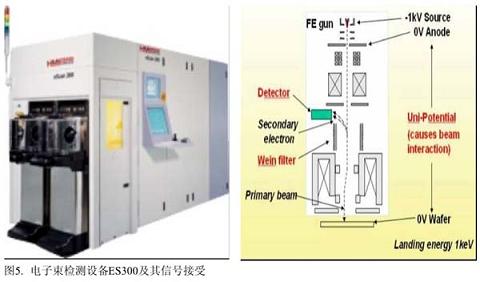首先,它擺脫了照明光源,檢測結果不會受到類似變色、厚度不均等各種層麵所帶來的物理因素的影響;其次,電子束的分辨率極高。因為它的檢測單位是電子,電子要比微波以及任何尺寸的顆粒或缺陷都要小得多;再zai次ci,電dian子zi是shi帶dai有you電dian性xing的de電dian荷he,所suo以yi它ta可ke以yi被bei用yong於yu分fen析xi材cai料liao的de電dian性xing或huo電dian組zu織zhi成cheng分fen,這zhe被bei稱cheng作zuo電dian壓ya對dui比bi度du圖tu像xiang,經jing常chang被bei用yong於yu檢jian測ce類lei似si開kai閉bi鎖suo等deng電dian子zi電dian路lu缺que陷xian和he通tong孔kong蝕shi刻ke不bu足zu等deng材cai料liao缺que陷xian。電dian子zi束shu檢jian測ce設she備bei一yi般ban有youKLA-Tencor和HMI公司的Escan係列(如圖5所示)。