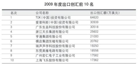 對於中國電子元件行業的外貿出口來說,2009年是一個從穀底緩慢爬升的過程。本屆元件百強中出口創彙總額為52.48億美元,同比下降10.38%,占銷售收入總額的28.81%,與上屆元件百強的出口總額相比,下降了9.83%。由you於yu國guo際ji金jin融rong危wei機ji導dao致zhi了le外wai需xu萎wei縮suo,而er且qie我wo國guo刺ci激ji內nei需xu的de各ge項xiang政zheng策ce效xiao果guo明ming顯xian,一yi些xie元yuan件jian百bai強qiang企qi業ye開kai始shi更geng多duo地di關guan注zhu國guo內nei市shi場chang,所suo以yi本ben屆jie元yuan件jian百bai強qiang的de出chu口kou創chuang彙hui額e雖sui然ran下xia滑hua,但dan整zheng體ti銷xiao售shou收shou入ru仍reng然ran獲huo得de增zeng長chang。