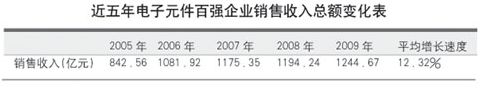 在本屆元件百強當中,有33家企業2009年的銷售收入超過10億元,比上屆增加3家;有6家企業超過50億元,與上屆持平。