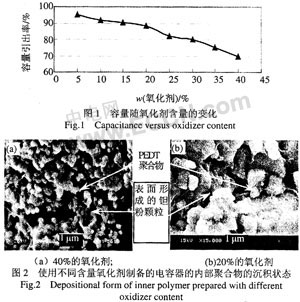 筆者重點討論了在用二步法製備聚合物電解質的過程中氧化劑含量、聚合溫度等工藝條件對聚合物鉭電容器電容量C、介質損耗和Res等電參數的影響。