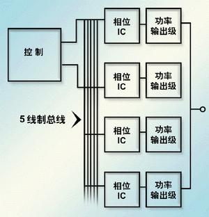 一種更有吸引力的方案是將以前分別由控製器和驅動器IC完成的功能在芯片內重新劃分。對控製器來說,諸如可編程電壓鑒別電路、一個PWM斜坡振蕩器、一個誤差信號放大器、偏置電壓和檢錯等功能在一個多相設計中僅出現一次。驅動IC現在變成一個相位IC,管理該設計每一相位中所有要重複的功能。這些功能包括電流分配、PWM、相位時序、電流感應和雙門驅動器。控製與相位IC之間的通訊由一種5線製模擬總線來完成,分別傳遞以下一些信息:偏置電壓、相位時序、電流感應/分配、PWM控製和參考調節電壓。