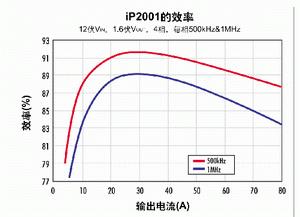 因此,IR公司開發了iPOWIR係列產品。這些模塊化構造模塊包括帶FET的驅動器IC、回掃(flyback)二極管、以及其它實現一個完整多相DC/DC電源所需的元件。這些器件能被非常緊密地耦合在一起,即便在如下圖所示的很高頻率下也能非常高效地工作。