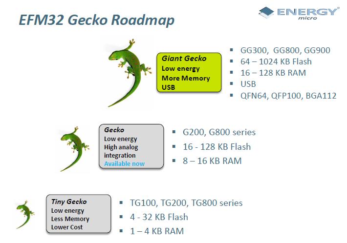 - 新的Giant Gecko係列提供更大的Flash閃存,部分產品提供USB外設