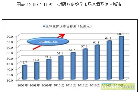 - 2015年全球監護儀市場需求複合增速不會低於6.15%
