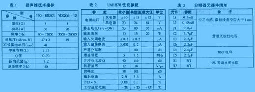 本文介紹的揚聲器均采用防磁揚聲器。高音揚聲器采用上海領先音響儀器公司生產的銀笛牌YDQG4-12型高音揚聲器,該款揚聲器采用了進口絲質振膜、磁液冷卻係統、全封閉防磁式磁路等一係列Hi-Fi單dan元yuan采cai用yong的de技ji術shu,使shi它ta比bi常chang見jian的de低di價jia高gao音yin單dan元yuan擁yong有you更geng大da的de功gong率lv承cheng受shou能neng力li,音yin質zhi更geng細xi膩ni柔rou美mei。低di音yin揚yang聲sheng器qi則ze采cai用yong了le南nan京jing電dian聲sheng股gu份fen公gong司si生sheng產chan的de南nan鯨jing牌pai4英寸噴膠紙盆防磁低音揚聲器,型號為110-8SX01。各揚聲器技術指標如表1所示。