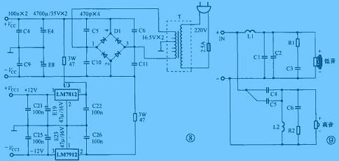 C8和C9為電源旁路電容(ByPass旁路電容),起到降低電源高頻內阻的作用,防止電路高頻自激,使LM1876工作更穩定。