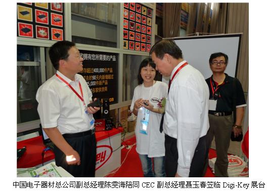 電子展開幕後,中國電子器材總公司副總經理陳雯海陪同中國電子信息產業集團有限公司副總經理聶玉春蒞臨Digi-Key的展台,了解Digi-Key的小批量采購服務,歡迎Digi-Key為西部的工程師提供方便快捷的小批量采購服務,並衷心希望Digi-Key在中國有更好的發展。