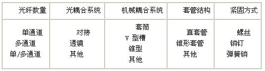 目前,大多數的光纖連接器是由三個部分組成的,即兩個配合插頭和一個耦合管。兩個插頭裝進兩根光纖尾端;耦合管起對準套管的作用。另外,耦合管多配有金屬或非金屬法蘭,以便於連接器的安裝固定。
