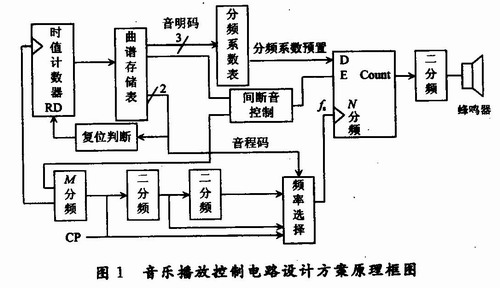 音樂播放控製電路設計方案原理框圖如圖1所示。