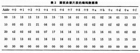 曲qu譜pu存cun儲chu單dan元yuan的de數shu據ju輸shu出chu時shi間jian是shi時shi值zhi計ji數shu脈mai衝chong的de一yi個ge周zhou期qi,決jue定ding了le該gai單dan元yuan音yin符fu的de持chi續xu時shi間jian。所suo以yi,與yu計ji數shu脈mai衝chong周zhou期qi相xiang同tong時shi值zhi的de音yin符fu為wei音yin長chang的de度du量liang單dan位wei,其qi音yin符fu碼ma占zhan1個存儲單元。其他音符根據其時值長短占據不同數量的存儲單元。比如,若以8分音符的時值作為存儲器地址計數器的脈衝周期,則8分音符碼占1個存儲單元,4分音符占2個存儲單元,2分音符占4個存儲單元,以此類推。