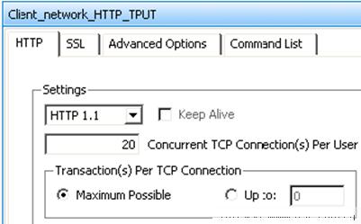 在進行吞吐量基線測試中,一般以HTTP作為應用層協議,為了得到最理想的測試效果,通過會選擇HTTP1.1,每個TCP連接處理盡量多的HTTP事務(transacTIon),並且將HTTP載荷設置較大。圖2是使用IxLoad設置的例子。