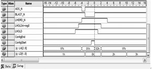 圖4中ADS_N、BLAST_N、LWORD_N、LHOLD、LHOLDA是LocalBus的接口信號,ConfigEnd和ConfigStart是分別代表配置結束和配置開始的標誌寄存器,LA是接口的地址信號,用於模塊中控製寄存器的尋址,LD是接口的數據信號,用於指令數據的發送和數據的回收。