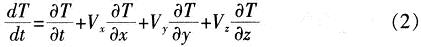 三維直角坐標係中的瞬態溫度場場變量T(x,y,z,t)滿足: