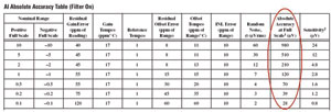 圖2NI628x數據采集板卡的絕對精度表