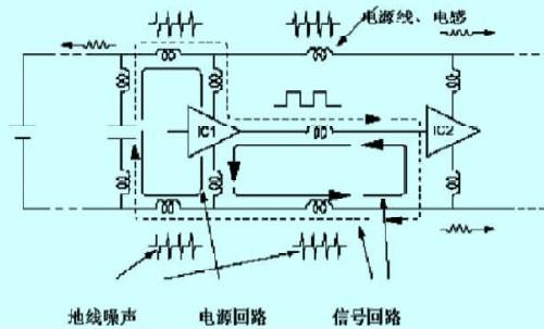 高速數字電路各類幹擾的主要產生原因是由電源自身固有噪聲頻率及外部線路上各類變化的di/dt、du/dt 產生,由於電路板上存在電源回路、信號回路、高速信號回路及附屬在線路上的各類容性、ganxingfuzai,yincidangxinhaochanshengtiaobianshidoujiangchanshengyigejianfengchongjixingchengzaosheng,erzhexiezaoshengjiangtongguogehuiludedianliuhuanyanluchuandao,yinciyingdangyizhidianyuanzishendeguyouzaoshengjigezhonggaosushuzitiaobianyinqidezaosheng。 抑(yi)製(zhi)電(dian)路(lu)自(zi)身(shen)或(huo)者(zhe)各(ge)類(lei)突(tu)變(bian)信(xin)號(hao)產(chan)生(sheng)的(de)噪(zao)聲(sheng),最(zui)好(hao)的(de)抑(yi)製(zhi)方(fang)式(shi)就(jiu)是(shi)去(qu)耦(ou)和(he)濾(lv)波(bo)。這(zhe)樣(yang)既(ji)減(jian)少(shao)了(le)自(zi)身(shen)的(de)噪(zao)聲(sheng)也(ye)能(neng)夠(gou)吸(xi)收(shou)外(wai)部(bu)對(dui)其(qi)的(de)影(ying)響(xiang),提(ti)高(gao)自(zi)身(shen)的(de)抗(kang)幹(gan)擾(rao)能(neng)力(li)。圖(tu)1 簡要說明在各個電路階段所產生的噪聲。