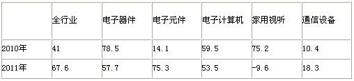 上半年,整機行業受結構調整的影響,增長放緩。視聽行業明顯下滑,同比下降9.6%;通信設備行業投資增長放慢,同比增長18.3%,低於全行業49.3個百分點,其中6月份下降23.4%;計算機行業在平板電腦、一體機等熱點帶動下,增長相對較快,上半年完成投資322億元,同比增長53.5%。