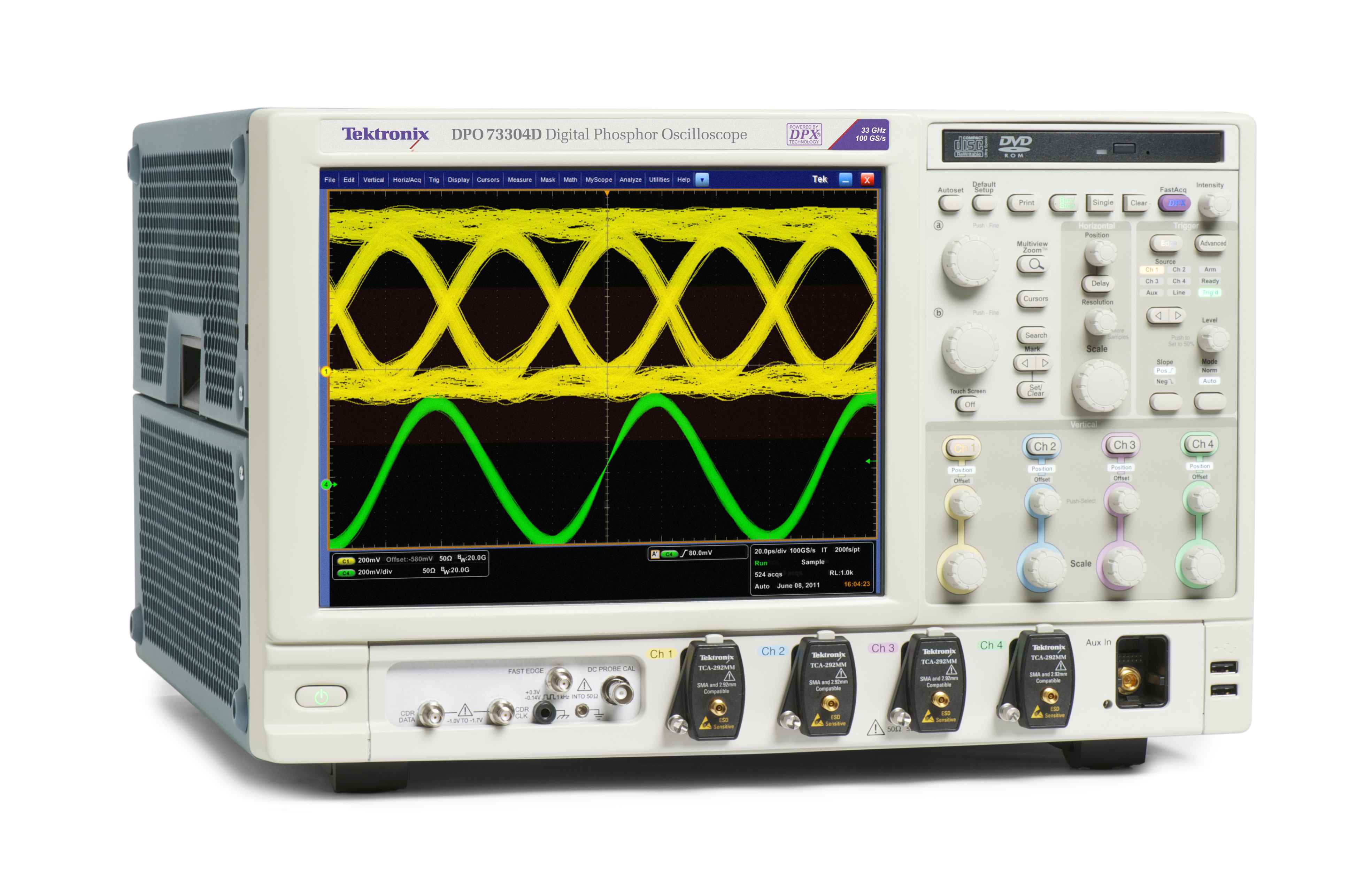 DPO/DSA70000D型號產品將於2011年第4季度全球上市。這四個上市產品包括33GHz帶寬的DPO73304D和DSA73304D、25 GHz帶寬的DPO72504D 和DSA72504D。