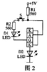 可控矽檢測電路如圖2所示,先用萬用表檢測出被測可控矽的A、G、K極,再將被測可控矽的A、G、K三個引腳插入對應的插孔中,接通電源,不按按鈕開關S時,發光二極管D2不發光,按一下按鈕開關S時,若發光二極管D2能持續發光,則被測可控矽是好的。