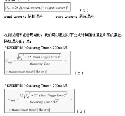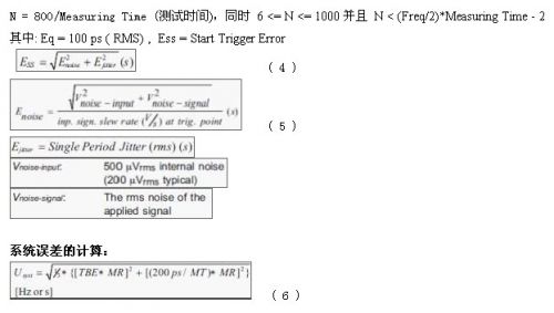 頻(pin)率(lv)和(he)周(zhou)期(qi)互(hu)為(wei)倒(dao)數(shu),所(suo)以(yi)在(zai)頻(pin)率(lv)計(ji)的(de)測(ce)試(shi)中(zhong),頻(pin)率(lv)和(he)周(zhou)期(qi)的(de)誤(wu)差(cha)計(ji)算(suan)方(fang)法(fa)是(shi)一(yi)樣(yang)的(de)。從(cong)測(ce)試(shi)誤(wu)差(cha)的(de)產(chan)生(sheng)來(lai)說(shuo)主(zhu)要(yao)有(you)兩(liang)類(lei),一(yi)類(lei)是(shi)隨(sui)機(ji)誤(wu)差(cha),一(yi)類(lei)是(shi)係(xi)統(tong)誤(wu)差(cha)。隨(sui)機(ji)誤(wu)差(cha)主(zhu)要(yao)由(you)於(yu)如(ru)噪(zao)聲(sheng)或(huo)者(zhe)一(yi)些(xie)隨(sui)機(ji)因(yin)素(su)產(chan)生(sheng)的(de)誤(wu)差(cha),很(hen)難(nan)消(xiao)除(chu)。係(xi)統(tong)誤(wu)差(cha)主(zhu)要(yao)是(shi)由(you)於(yu)測(ce)試(shi)方(fang)法(fa)、儀表設置或者儀表性能引起的誤差。不同的設備製造商都有自己的關於誤差的計算方法,大同小異,本文論述泰克FCA3000係列頻率計測試誤差的計算方法。