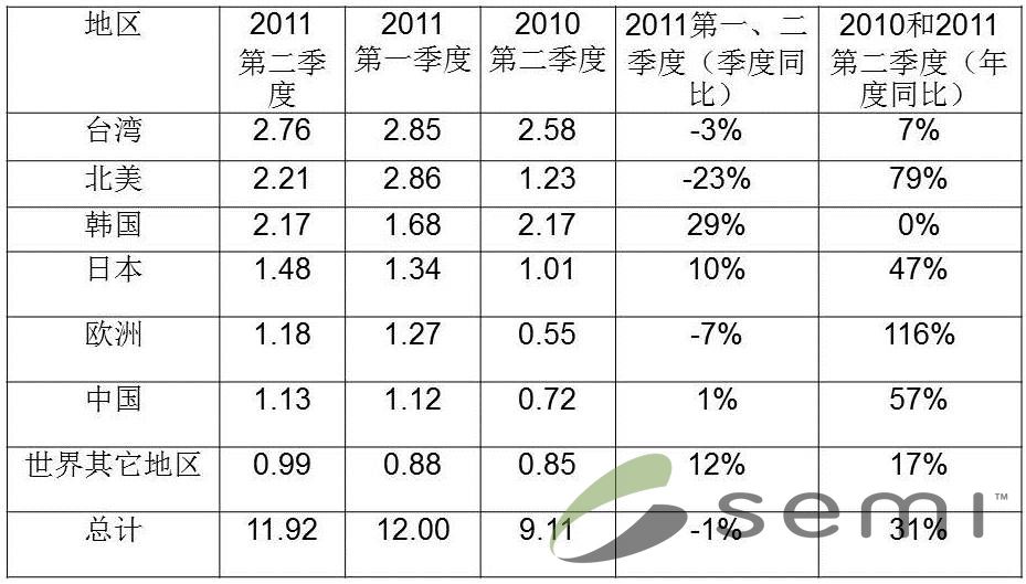 - 2011年第二季全球半導體製造設備出貨額達119.2億美元