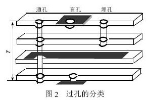 通tong孔kong,這zhe種zhong孔kong穿chuan過guo整zheng個ge線xian路lu板ban,可ke用yong於yu實shi現xian內nei部bu互hu連lian或huo作zuo為wei元yuan件jian的de安an裝zhuang定ding位wei孔kong。由you於yu通tong孔kong在zai工gong藝yi上shang更geng易yi於yu實shi現xian,成cheng本ben較jiao低di,所suo以yi一yi般ban印yin製zhi電dian路lu板ban均jun使shi用yong通tong孔kong。過guo孔kong的de分fen類lei如ru圖tu2 所示。