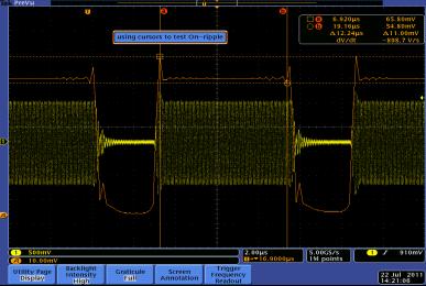 NXP CLPC632射頻芯片的相關管腳可以測量得到射頻發射的控製信號,如上圖所示的CH2藍色波形,我們可以將這些控製信號與RF信號的時域波形,以及RF信號的AvsT波形同時測量,這樣我們就可以簡便地觀察到各種控製指令對射頻發射的影響。