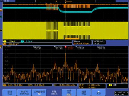 下麵我們以一個13.56MHz的RFID讀寫器係統為例,介紹MDO4000的跨域調試應用。