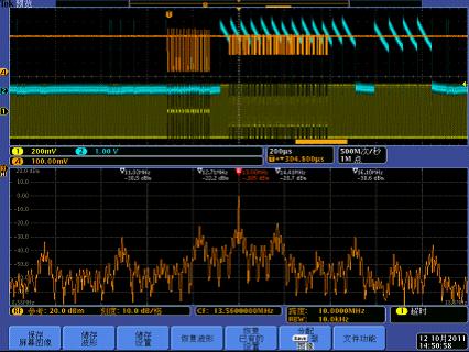 泰克MDO4000係列混合域示波器獨特的創新理念,為調試跨域的時頻相關的係統提供了獨一無二的工具。MDO4000在一台全功能的混合信號示波器的基礎上,增加了一台3GHz或6GHzdepinpufenxiyi,keyiwanchengputongpinpufenxiyidegezhongpinyucelianggongneng。wanquandulideshiboqishiyucaijixitonghepinpufenxiyipinyucaijixitong,jikeyiduligongzuo,yekeyitongguochufaxietonggongzuo。tongguoyidongpinpushijian,yonghukeyizaishiboqicaijidaodeshijianchuangkounei,guancezaishepintongdaocaijidaoderenheyidiandeRF信號的頻譜情況。MDO還提供了RF信號的幅度、頻率和相位相對於時間變化的調製域分析功能。這些獨有的功能幫助用戶測量RF信號的各種調製信息。使用頻譜分析儀的工程師經常麵臨的一個問題是如何準確地觸發並捕獲到關心的RF信號。由於傳統的頻譜分析儀觸發功能很有限,用戶很難做到一點。MDO4000不但可以通過RF信號的各種特征進行觸發,還可以使用示波器的觸發係統,通過基帶或控製信號完成RF信號的觸發采集,這種功能極大地降低了調製物聯網設備的難度。