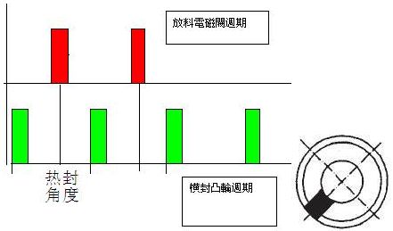 在打開第一個電磁閥間隔1s後打開第二個電磁閥。如此則在落料桶內同時有兩包料,必須保證在後續的熱封電子凸輪運行周期此完全吻合才能確保無誤,如圖5所示。