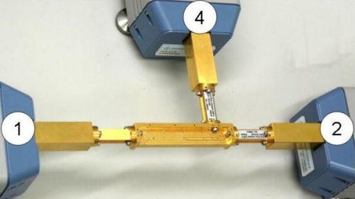 UOSM 校準技術的優點是可以利用一個未知的直通件作為標準件這一未知的直通件僅要求具有很好的正、反向互易性,因此,該未知直通件不要求具有良好的匹配和低損耗特性甚至價格低廉的、帶帶標準法蘭盤的波導管節、波導彎頭和波導扭轉接頭,隻要具有互易特性都可以作為直通件在校準後所有對輸出端口方向的改變都會造成(可避免的)精度損失,因此在這個例子當中,一個H麵的波導彎頭在波導測試端口1和4,以及測試端口2和4之間建立直通波導測試端口1和2是通過兩個測試端口的直接連接而建立直通的