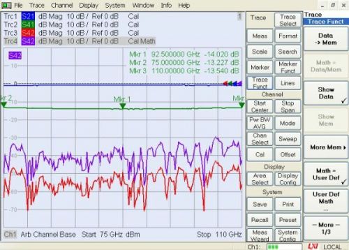下麵以一混頻器設置個90GHz帶通濾波器的測量為例,來討論測試步驟