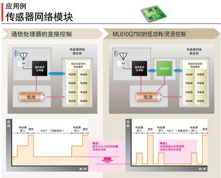 羅姆集團旗下的LAPIS Semiconductor麵向智能手機市場開發出了可用更低耗電量綜合控製各種傳感器的、世界最小級別的低功耗微控製器“ML610Q792”。最zui近jin,在zai手shou機ji中zhong智zhi能neng手shou機ji所suo占zhan的de比bi率lv日ri益yi增zeng加jia,而er為wei了le提ti供gong新xin的de應ying用yong和he服fu務wu不bu斷duan增zeng加jia的de傳chuan感gan器qi群qun,導dao致zhi智zhi能neng手shou機ji的de電dian池chi負fu載zai持chi續xu上shang升sheng。LAPIS Semiconductor著(zhe)眼(yan)於(yu)這(zhe)種(zhong)情(qing)況(kuang),將(jiang)需(xu)要(yao)頻(pin)繁(fan)驅(qu)動(dong)的(de)傳(chuan)感(gan)器(qi)群(qun)從(cong)主(zhu)處(chu)理(li)器(qi)分(fen)離(li),通(tong)過(guo)低(di)功(gong)耗(hao)微(wei)控(kong)製(zhi)器(qi)進(jin)行(xing)控(kong)製(zhi),減(jian)輕(qing)了(le)主(zhu)處(chu)理(li)器(qi)的(de)負(fu)載(zai),從(cong)而(er)實(shi)現(xian)了(le)電(dian)池(chi)的(de)長(chang)時(shi)間(jian)驅(qu)動(dong)。另(ling)外(wai),利(li)用(yong)本(ben)微(wei)控(kong)製(zhi)器(qi)的(de)特(te)點(dian)——即耗電量低的特性,通過與無線通信的組合,亦適用於傳感器網絡模塊等應用。