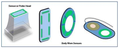 對於圖1中zhong所suo示shi的de器qi件jian,若ruo能neng在zai啟qi動dong器qi件jian或huo進jin行xing測ce量liang之zhi前qian先xian了le解jie器qi件jian與yu皮pi膚fu之zhi間jian的de接jie觸chu質zhi量liang等deng相xiang關guan信xin息xi,往wang往wang較jiao為wei有you利li。這zhe些xie器qi件jian包bao括kuo需xu要yao緊jin靠kao皮pi膚fu的de醫yi用yong探tan針zhen、生sheng物wu電dian位wei電dian極ji傳chuan感gan器qi或huo者zhe用yong於yu固gu定ding導dao管guan用yong管guan的de外wai殼ke。為wei確que定ding接jie觸chu條tiao件jian,可ke以yi在zai注zhu塑su生sheng產chan過guo程cheng中zhong將jiang圖tu中zhong綠lv色se的de幾ji個ge容rong性xing傳chuan感gan器qi電dian極ji直zhi接jie嵌qian入ru器qi件jian的de塑su料liao外wai殼ke。主zhu機ji微wei控kong製zhi器qi讀du取qu容rong性xing傳chuan感gan器qi控kong製zhi器qiIC上shang的de一yi些xie狀zhuang態tai寄ji存cun器qi,這zhe些xie寄ji存cun器qi表biao示shi容rong性xing傳chuan感gan器qi離li皮pi膚fu有you多duo近jin。隨sui後hou,主zhu機ji微wei控kong製zhi器qi上shang運yun行xing的de基ji本ben檢jian測ce算suan法fa處chu理li狀zhuang態tai寄ji存cun器qi信xin息xi,以yi確que定ding各ge傳chuan感gan器qi電dian極ji與yu皮pi膚fu的de接jie觸chu是shi否fou適shi當dang。