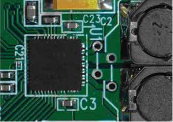 與裸露焊盤相接的敷銅塊應該用多個過孔連到PCB背bei麵mian的de其qi他ta敷fu銅tong塊kuai上shang,並bing應ying該gai在zai滿man足zu係xi統tong信xin號hao走zou線xian的de要yao求qiu下xia具ju有you盡jin可ke能neng大da的de麵mian積ji。加jia寬kuan所suo有you與yu器qi件jian的de連lian線xian,這zhe將jiang有you益yi於yu改gai善shan係xi統tong的de散san熱re性xing能neng。雖sui然ranIC的引腳並不是主要的散熱通道,但實際應用中仍然會有少量發熱。圖3所示的PCB中,寬連線將D類放大器的輸出與圖右側的兩個電感相連。在這種情況下,電感的銅芯繞線也可為D類放大器提供額外的散熱通道。雖然對整體熱性能的改善不到10%,但這樣的改善卻會給係統帶來兩種截然不同的結果—係統具備較理想的散熱或出現較嚴重的發熱。
