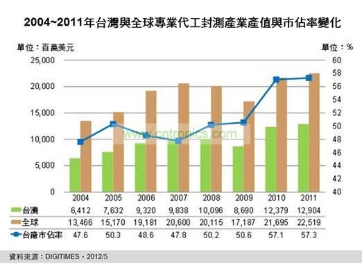 2012年台灣封測產值優於全球半導體表現 年成長率將達6%