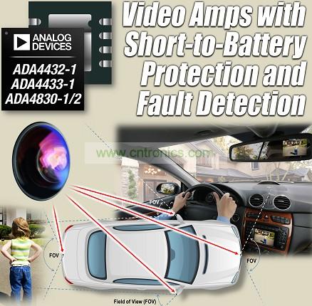 Analog Devices, Inc. ,全球領先的高性能信號處理解決方案供應商,最近推出一係列高速視頻放大器ADA4830-1/2和ADA4432-1/33-1,這些器件集成電池短路保護和故障檢測功能,適合汽車安全和信息娛樂應用中的模擬視頻係統。ADI公司的這些新款集成式視頻放大器采用3mm x 3mm封裝,與完全分立式解決方案相比,電路板空間至少節省80%,非常適合後視攝像頭等空間受限的應用。ADA4830-1(單通道)和ADA4830-2(雙通道)視頻差動放大器以及ADA4432-1(單端輸出)和ADA4433-1(差分輸出)模擬視頻濾波器放fang大da器qi為wei設she計ji人ren員yuan提ti供gong了le通tong過guo屏ping蔽bi和he非fei屏ping蔽bi雙shuang絞jiao線xian電dian纜lan傳chuan輸shu模mo擬ni視shi頻pin信xin號hao的de完wan整zheng芯xin片pian組zu。以yi上shang視shi頻pin放fang大da器qi也ye可ke單dan獨du使shi用yong,以yi作zuo為wei視shi頻pin信xin號hao鏈lian一yi部bu分fen來lai提ti供gong接jie收shou機ji(ADA4830-1/2)和發射機(ADA4432-1/33-1)功能。所有這些新款放大器均內置最高18 V的電池短路保護、接地短路保護、故障檢測、寬共模電壓範圍和魯棒的ESD(靜電放電)性能。