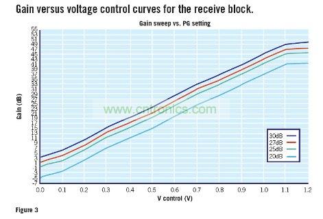 圖3:接收模塊增益隨電壓控製變化的曲線圖