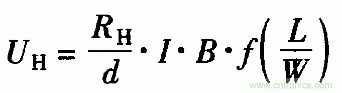 ---元件形狀函數,其中L為元件的長度,W為元件的寬度。從上麵的公式可以看出,霍爾電壓正比於電流強度和磁場強度,且與霍爾元件的形狀有關(guan)。在(zai)電(dian)流(liu)強(qiang)度(du)恒(heng)定(ding)以(yi)及(ji)霍(huo)爾(er)元(yuan)件(jian)形(xing)狀(zhuang)確(que)定(ding)的(de)條(tiao)件(jian)下(xia),霍(huo)爾(er)電(dian)壓(ya)正(zheng)比(bi)於(yu)磁(ci)場(chang)強(qiang)度(du)。當(dang)所(suo)加(jia)磁(ci)場(chang)方(fang)向(xiang)改(gai)變(bian)時(shi),霍(huo)爾(er)電(dian)壓(ya)的(de)符(fu)號(hao)也(ye)隨(sui)之(zhi)改(gai)變(bian)因(yin)此(ci),霍(huo)爾(er)元(yuan)件(jian)可(ke)以(yi)用(yong)來(lai)測(ce)量(liang)磁(ci)場(chang)的(de)大(da)小(xiao)及(ji)方(fang)向(xiang)。