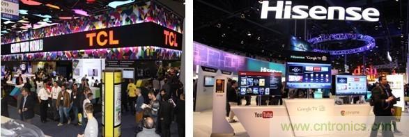 (圖為美國CES展會現場的中國企業TCL、海信展位)