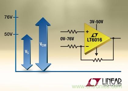 運算放大器提供50µV精準度和0V至76V的輸入範圍