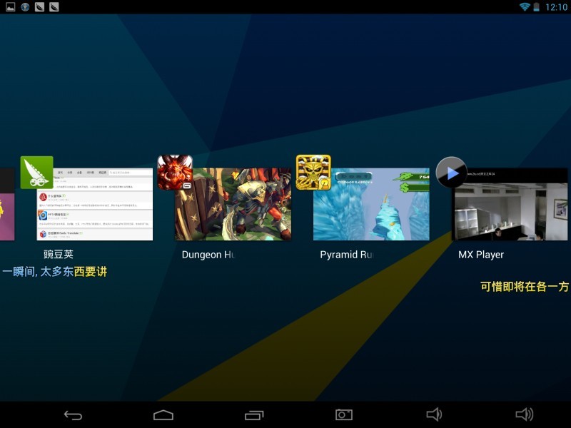 轉(zhuan)眼(yan)已(yi)經(jing)進(jin)入(ru)四(si)核(he)視(shi)網(wang)膜(mo)時(shi)代(dai),那(na)麼(me)為(wei)什(shen)麼(me)流(liu)暢(chang)度(du),靈(ling)敏(min)度(du)相(xiang)比(bi)過(guo)時(shi)雙(shuang)核(he)不(bu)升(sheng)反(fan)降(jiang)呢(ne)?原(yuan)因(yin)很(hen)簡(jian)單(dan),優(you)化(hua)沒(mei)到(dao)位(wei)。試(shi)想(xiang)一(yi)下(xia)一(yi)個(ge)功(gong)能(neng)強(qiang)大(da)的(de)cpu加上一個沒經過深度優化的係統,使用情況令人擔憂,本篇單獨測試四核視網膜平板流暢度之—多程序之間切換。