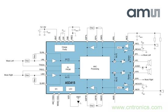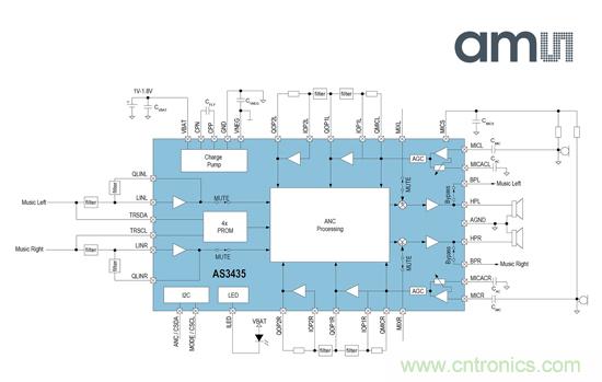 AS3435和AS3415也是行業內首款具有集成旁路開關的主動降噪IC,為耳機生產商開展更時尚、便宜的耳機設計帶來更多自由發揮的空間。