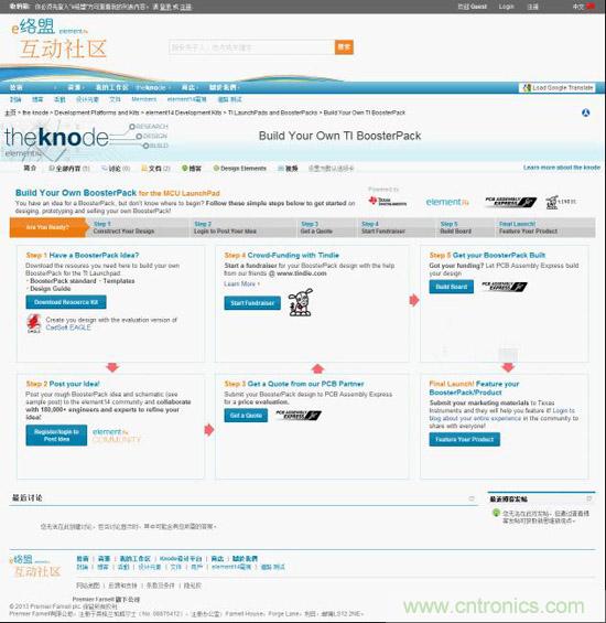 e絡盟母公司Premier Farnell集團首席技術官沈洪先生表示:“我們很高興能夠在強大的e絡盟社區推出這個行業首屈一指的網站平台。e絡盟社區現擁有20萬社區成員,通過將設計工程師、業ye餘yu愛ai好hao者zhe及ji供gong應ying商shang合he作zuo夥huo伴ban集ji中zhong到dao一yi個ge平ping台tai,以yi便bian他ta們men進jin行xing直zhi接jie交jiao流liu,極ji大da地di縮suo短duan了le新xin品pin上shang市shi時shi間jian。我wo們men極ji力li鼓gu勵li並bing支zhi持chi用yong戶hu開kai發fa針zhen對duiTI MCU LaunchPad的擴展板。我們將幫助他們進行概念設計、產品開發、原型設計,直至最後投入市場。”