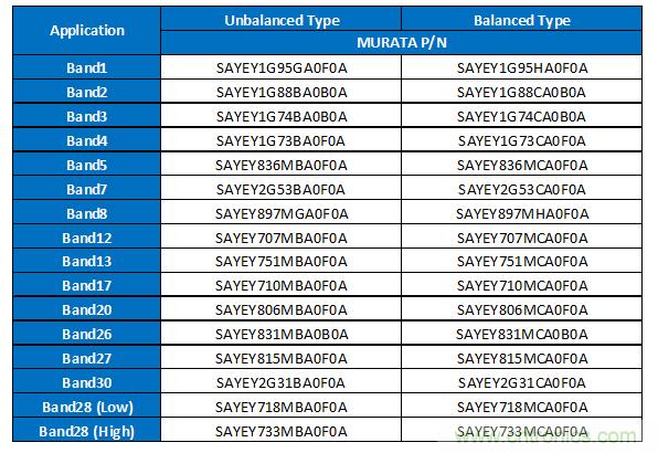 表1所示的就是目前村田正在推進的1814尺寸SAW雙工器的產品一覽。