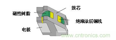 上述LQH係列在鼓芯外麵纏繞的絕緣塗層銅線的周圍,應用的磁性樹脂起到了減少漏磁通、保護絕緣塗層銅線,提高產品強度的作用。構造概論如圖2所示。
