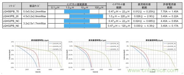 表1,車載信息設備用功率電感LQH**PB係列的產品概要