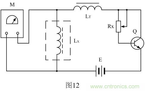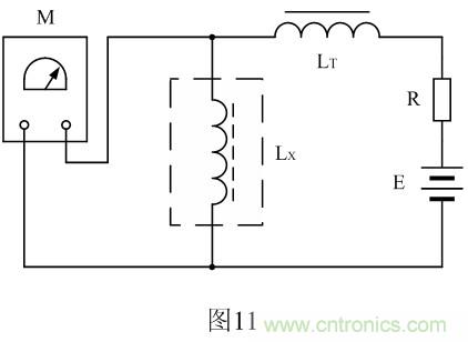 這裏順便說明,采用圖7測試時應該注意的地方。圖7中,隔離電感LT的數值要求是測試電感Lx數值的3倍以上,並且測量高壓包初級線圈的初始電感值L0時,最好也要接入電路之中。這裏,隔離電感LT可選取20毫亨以上的矽鋼片直流電感,電感的鐵芯要留有氣隙;流電源可用一個穩壓電源與一個大功率電阻串聯代替,如圖11,或用一個穩壓電源與一個大功率晶體放大器串聯來代替,如圖12。